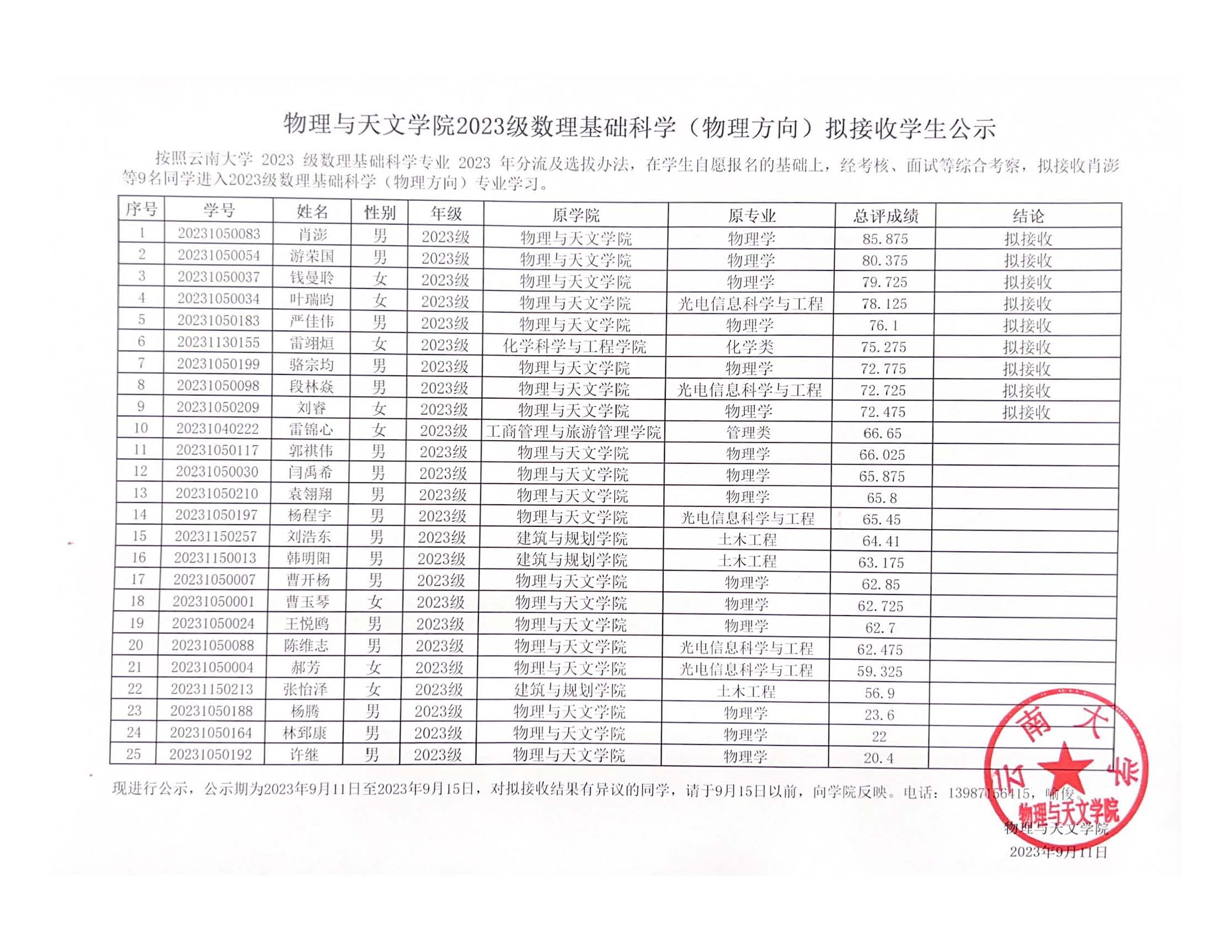 2023级数理基础科学(物理方向)选拔公示.pdf