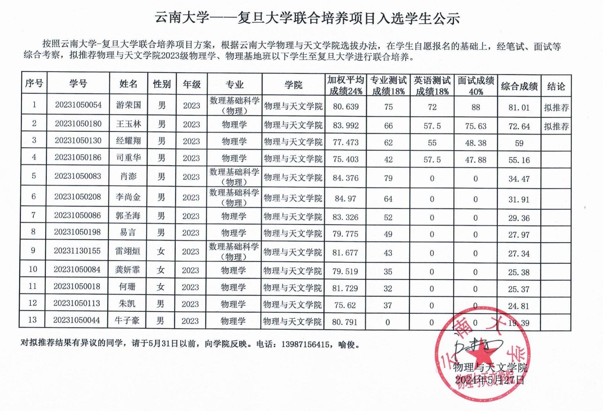 物理与天文学院2023、2022级数理基础科学(物理方向)拟接收学生公示