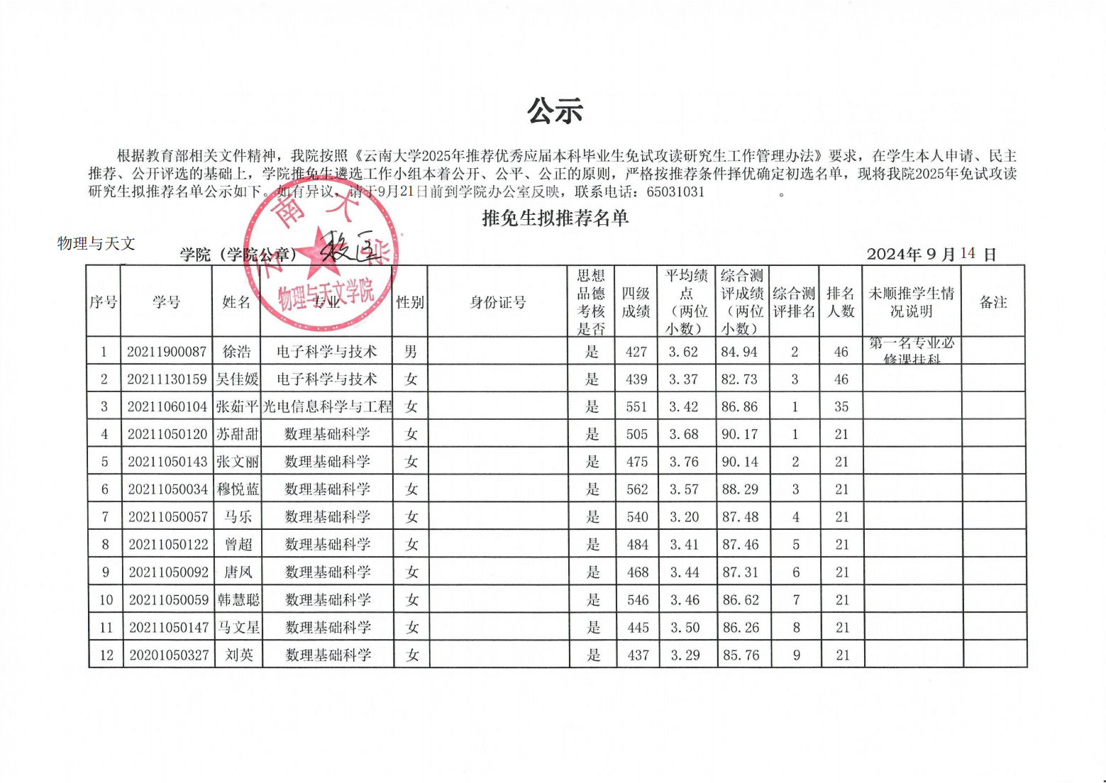 物理与天文学院2025年推荐优秀应届本科毕业生免试攻读研究生工作实施细则
