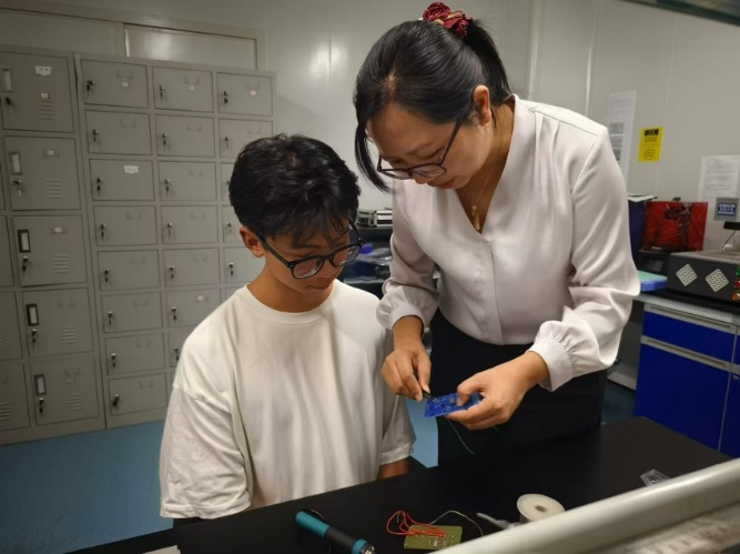 图为任杨教授在实验室指导参赛队员