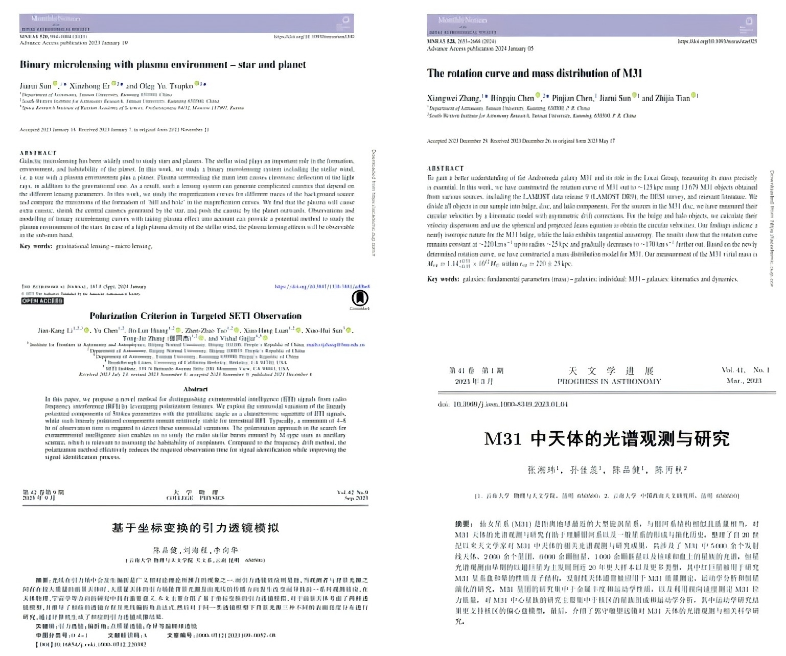 近三年,“数理基础科学(物理方向)”平均升学率为68.60%,“天文菁英班”平均升学率为60.56%;“天文菁英班”本科生发表高水平科研论文10余篇。