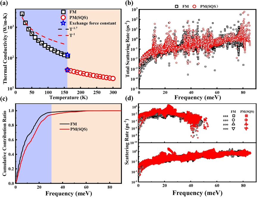 在该工作中,他们通过恢复磁序的影响,尝试揭示磁性体系中声子热输运性质的变化及其影响。为此,他们提出了一种创新的集成计算框架,将特殊准随机结构(SQS)方法、第一性原理计算和玻尔兹曼输运理论相结合,系统地探究了磁序对单层 CrOCl 声子热输运的影响,深入揭示了磁无序对声子热输运的复杂影响。该研究工作不仅为理解磁性材料中的热输运机制提供了深刻的物理洞见,还为优化磁性材料的热管理性能奠定了重要的理论基础。