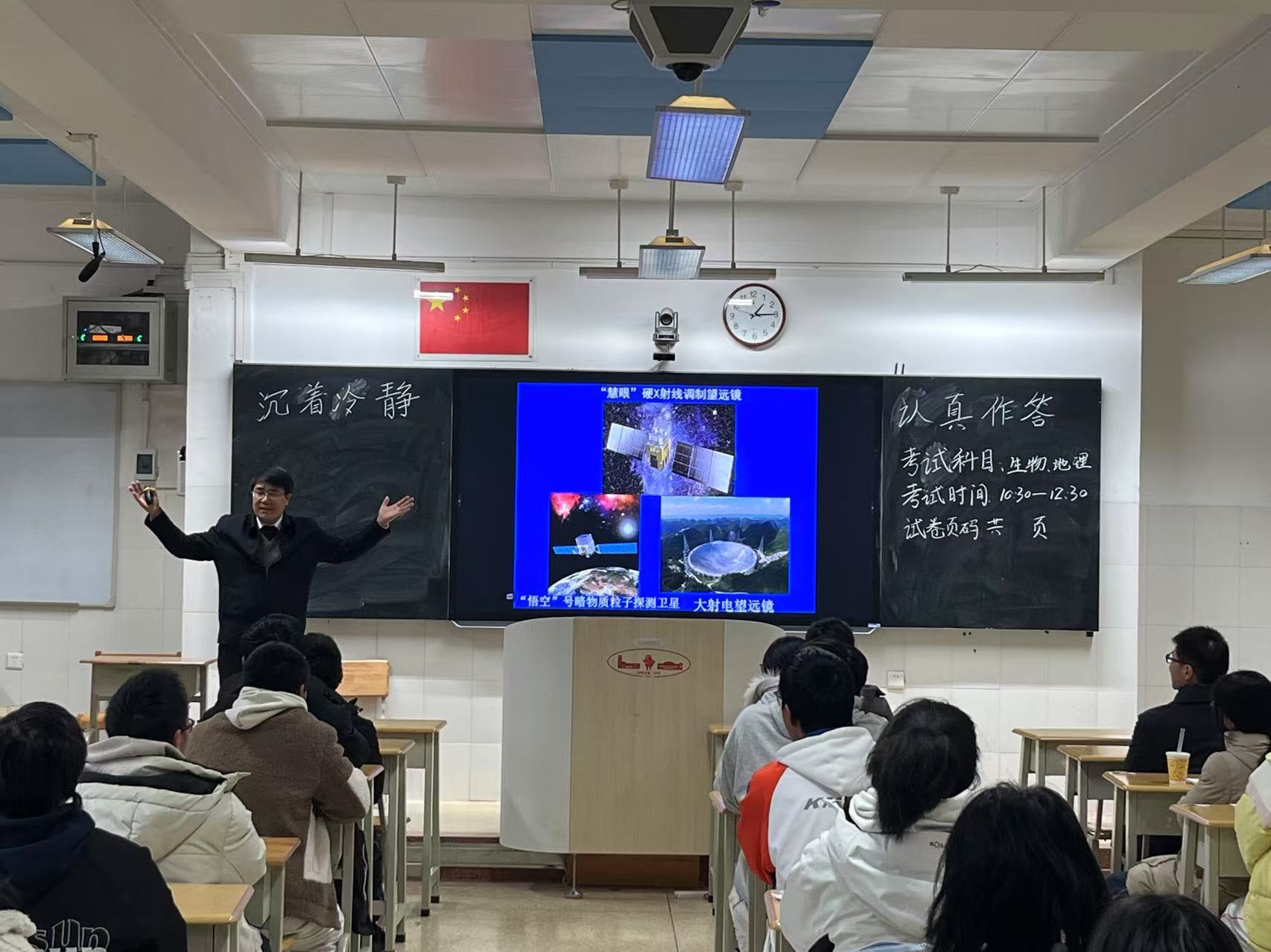 2025年1月10日,必一·运动(B-Sports)官方网站副院长钱声帮研究员、副院长江楠教授带队到昆明市第三中学开展天文科普与高考招生宣传工作。本次活动主要围绕天文研究的目的与意义及必一·运动(B-Sports)官方网站学科专业介绍等展开,昆明市第三中学高三组相关教师及100余名学生参加。